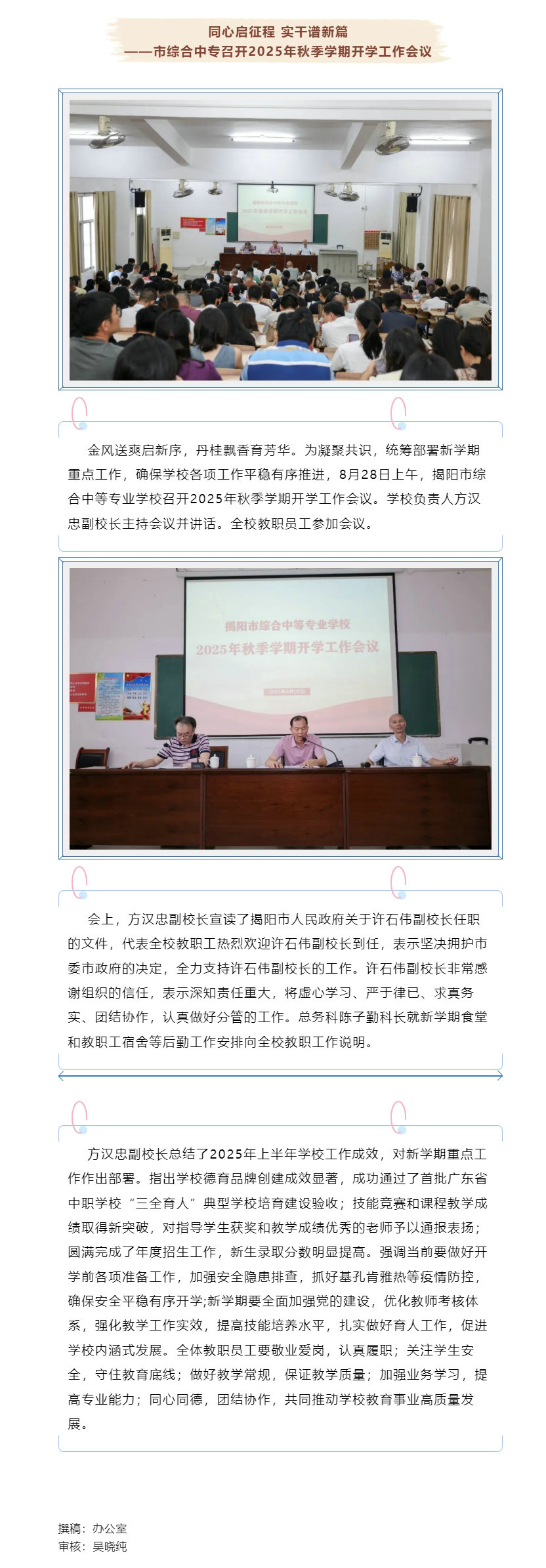 同心启征程 实干谱新篇——市综合中专召开2025年秋季学期开学工作会议