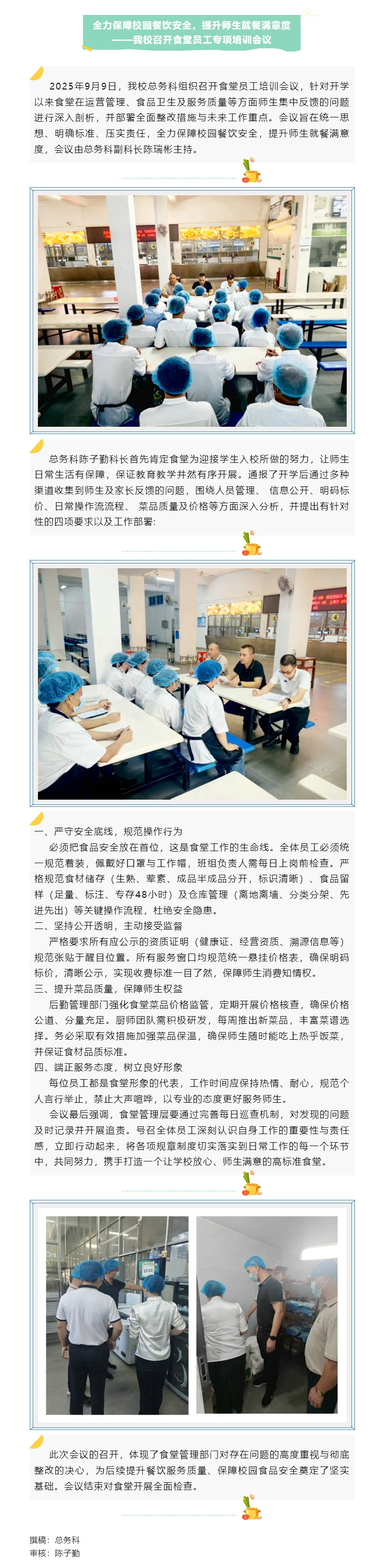 全力保障校园餐饮安全,提升师生就餐满意度——我校召开食堂员工专项培训会议