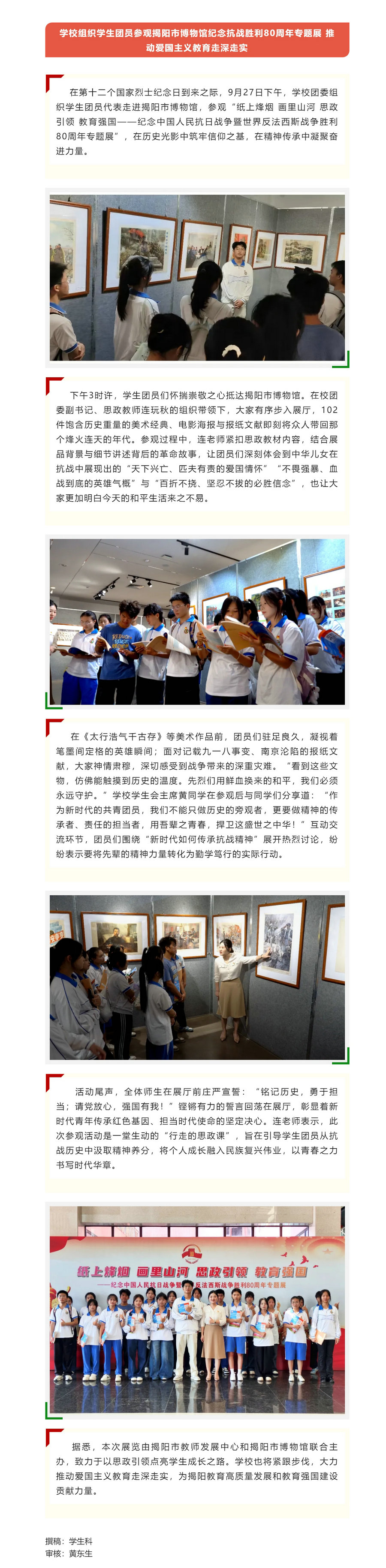 学校组织学生团员参观揭阳市博物馆纪念抗战胜利80周年专题展 推动爱国主义教育走深走实