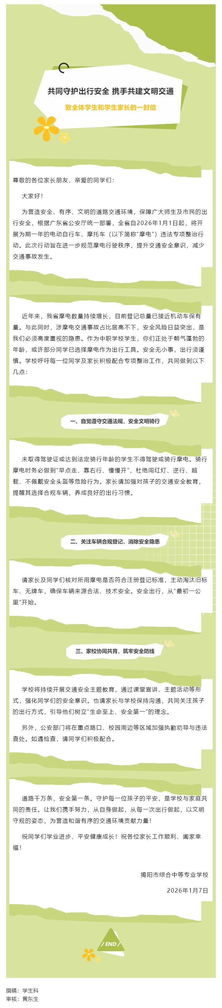 当前位置:主页->信息中心->学生科->通知公告->共同守护出行安全,携手共建文明交通——致全体学生和学生家长的一封信