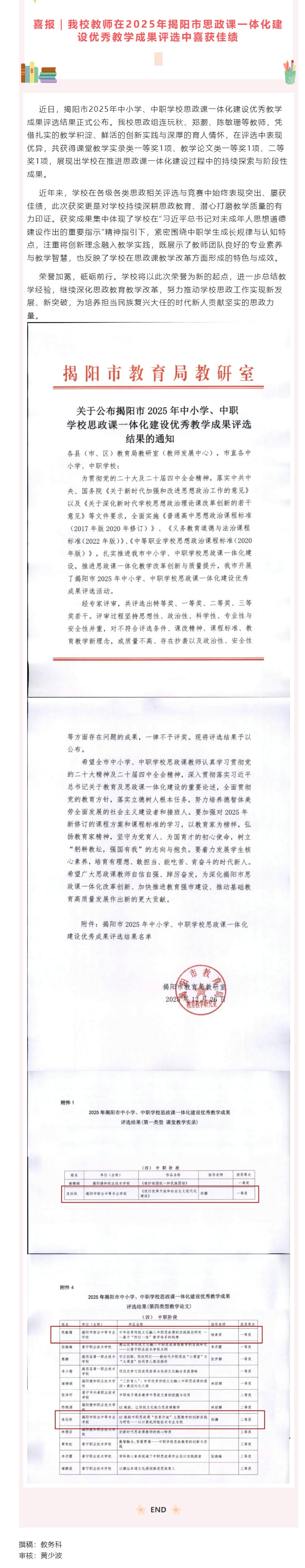 喜报|我校教师在2025年揭阳市思政课一体化建设优秀教学成果评选中喜获佳绩