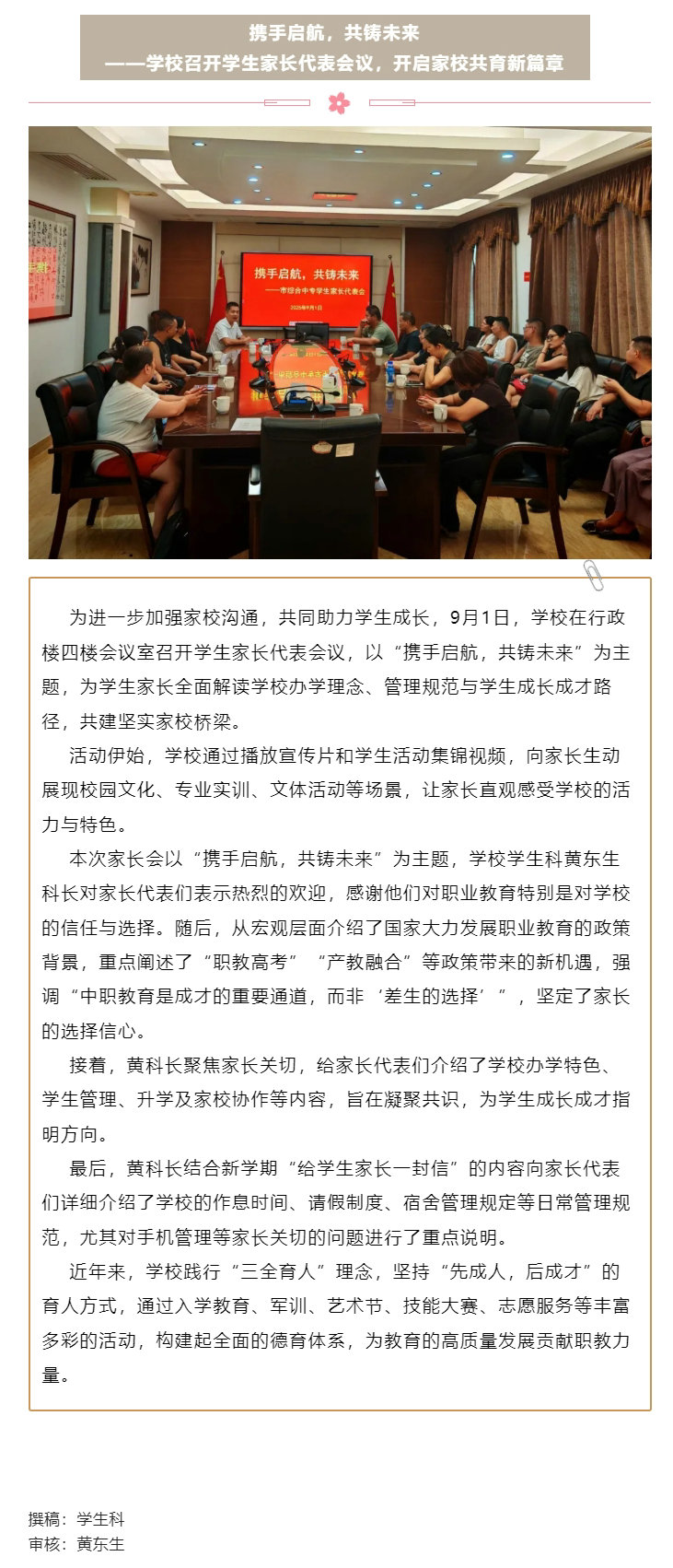 当前位置:主页->信息中心->学生科->校园新闻->携手启航,共铸未来——学校召开学生家长代表会议,开启家校共育新篇章