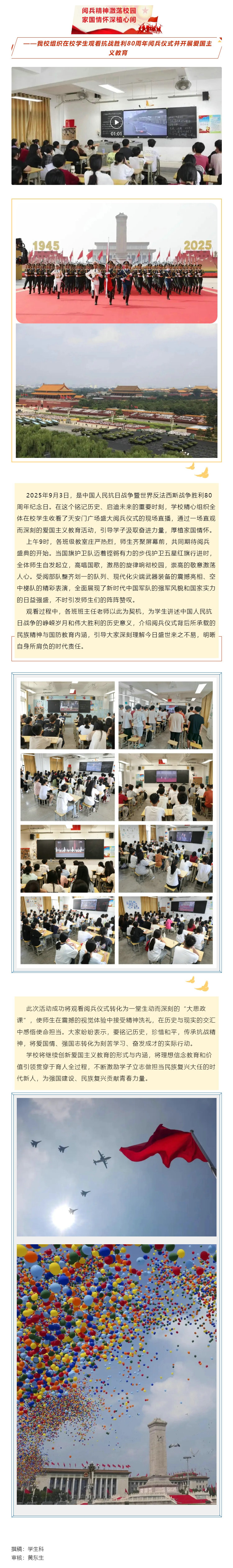 阅兵精神激荡校园,家国情怀深植心间——我校组织在校学生观看抗战胜利80周年阅兵仪式并开展爱国主义教育