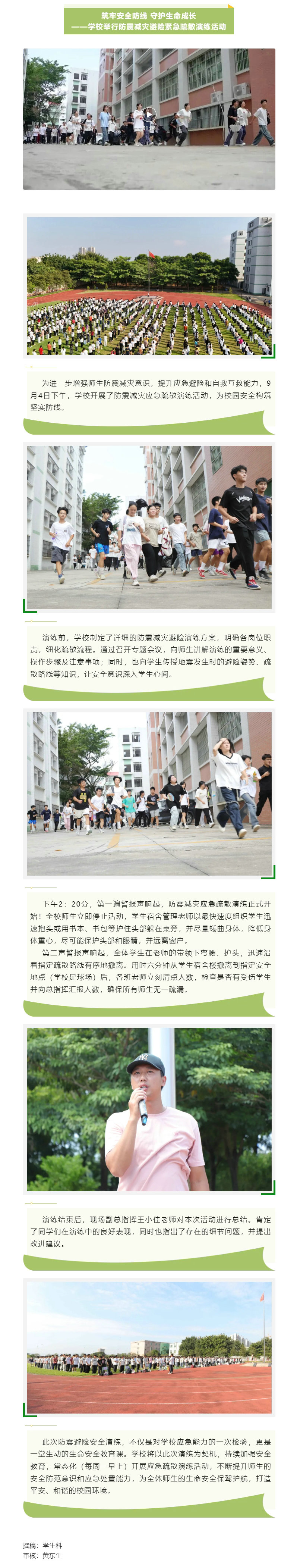 筑牢安全防线 守护生命成长——学校举行防震减灾避险紧急疏散演练活动