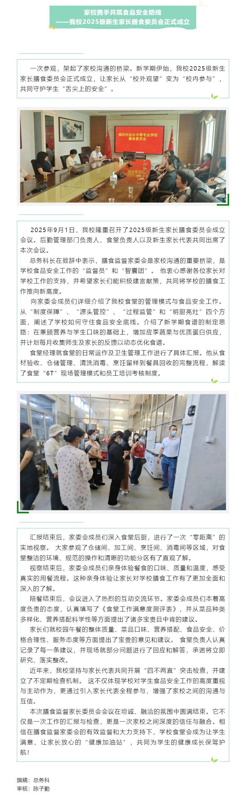 家校携手共筑食品安全防线——我校2025级新生家长膳食委员会正式成立