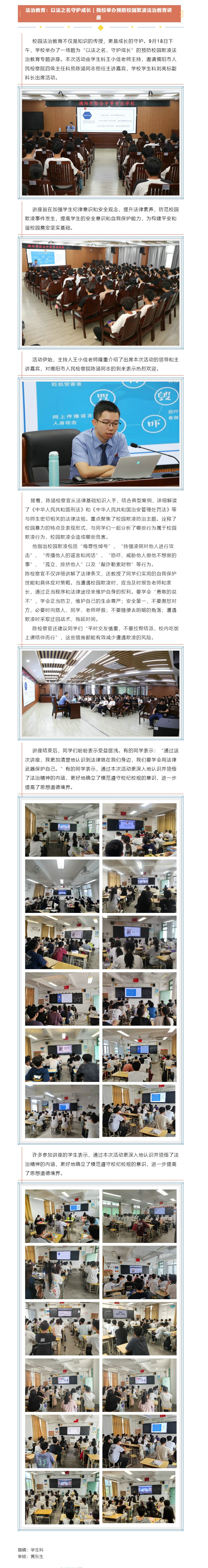 法治教育:以法之名守护成长|我校举办预防校园欺凌法治教育讲座