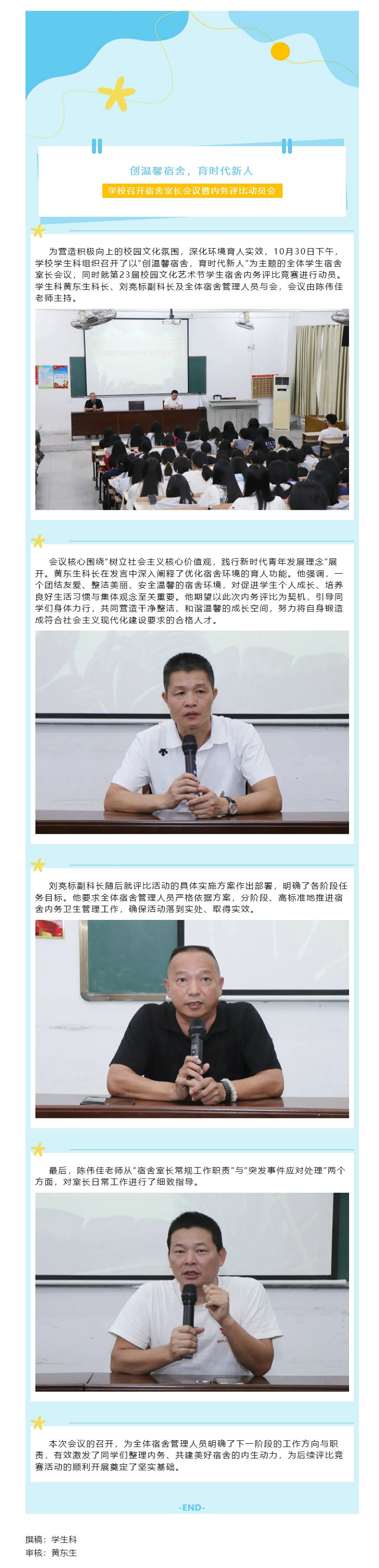 创温馨宿舍,育时代新人:学校召开宿舍室长会议暨内务评比动员会