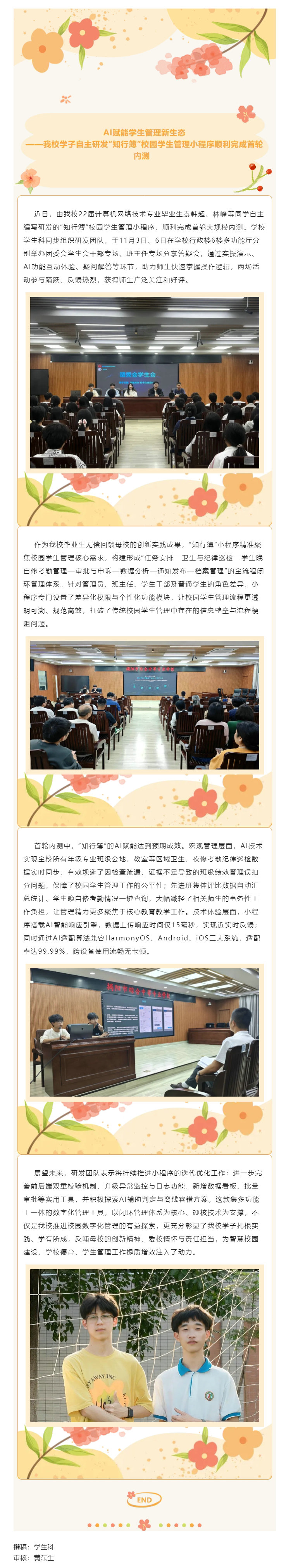 AI赋能学生管理新生态——我校学子自主研发“知行簿”校园学生管理小程序顺利完成首轮内测