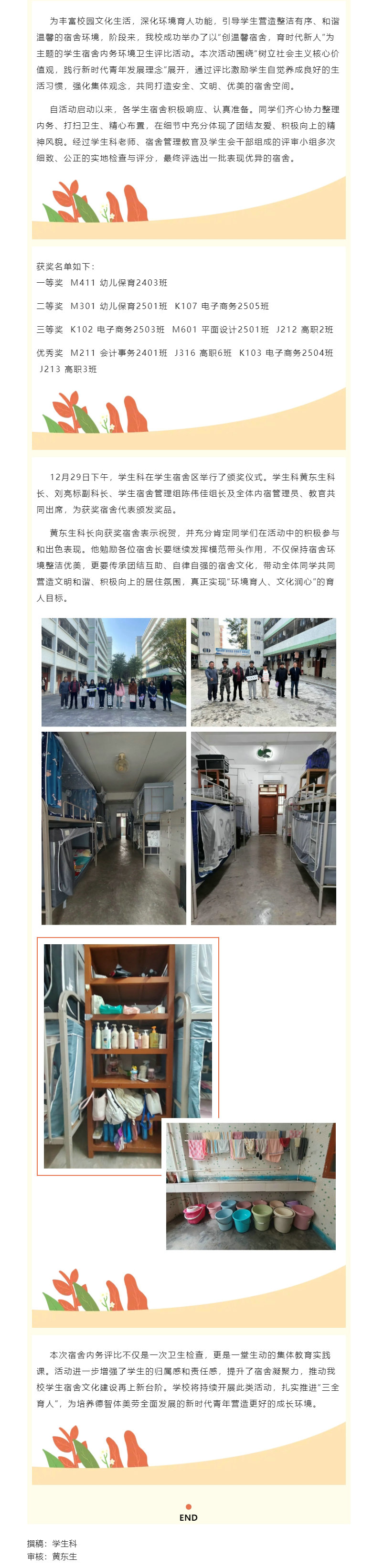 创温馨宿舍,育时代新人——学校第23届校园文化艺术节学生宿舍内务环境卫生评比活动圆满结束