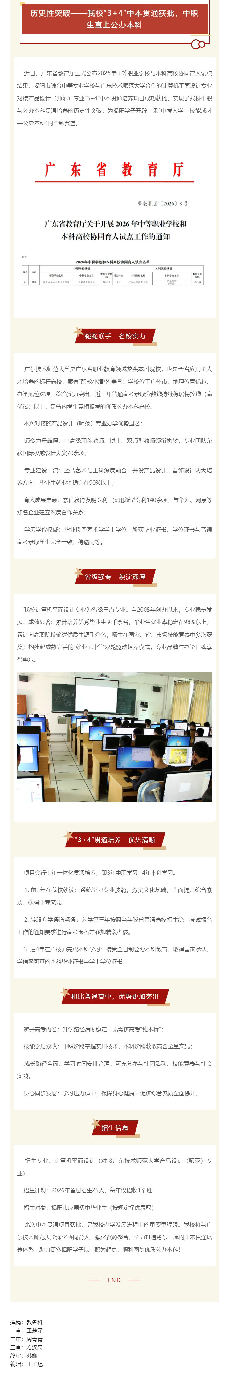 当前位置:主页->信息中心->教务科->校园新闻->历史性突破——我校“3+4”中本贯通获批,中职生直上公办本科