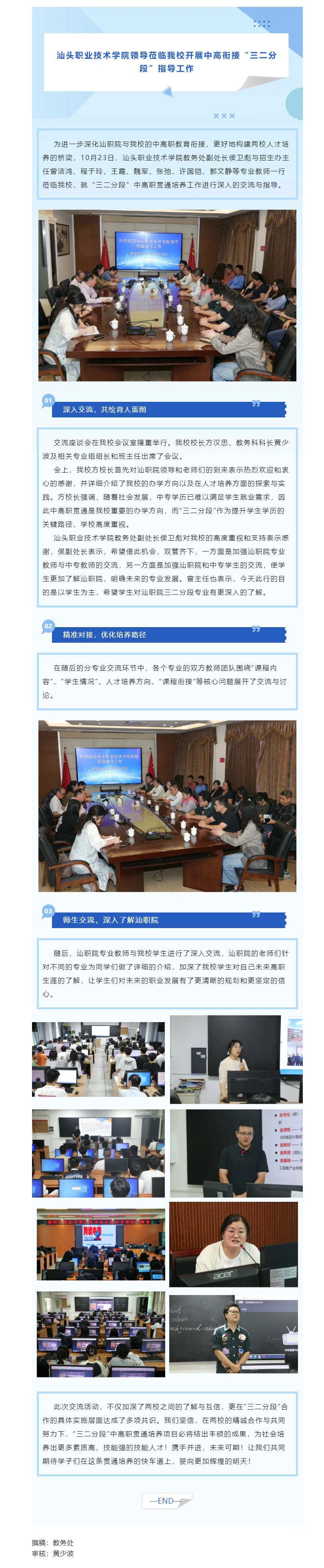 汕头职业技术学院领导莅临我校开展中高衔接“三二分段”指导工作