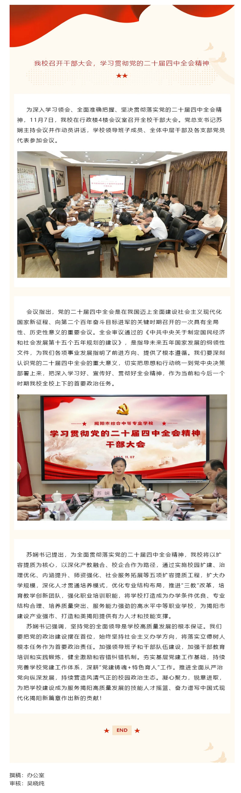 我校召开干部大会,学习贯彻党的二十届四中全会精神